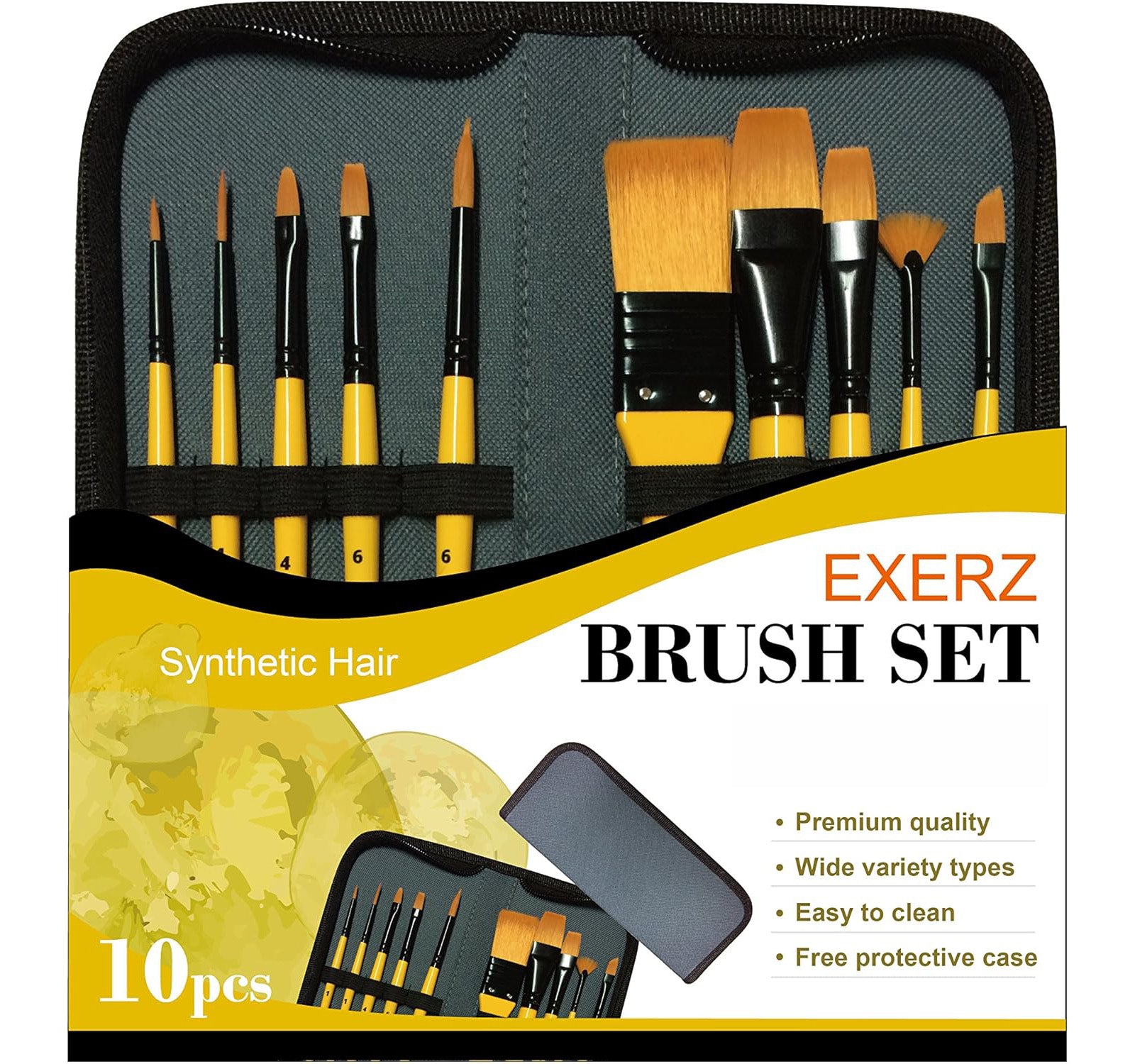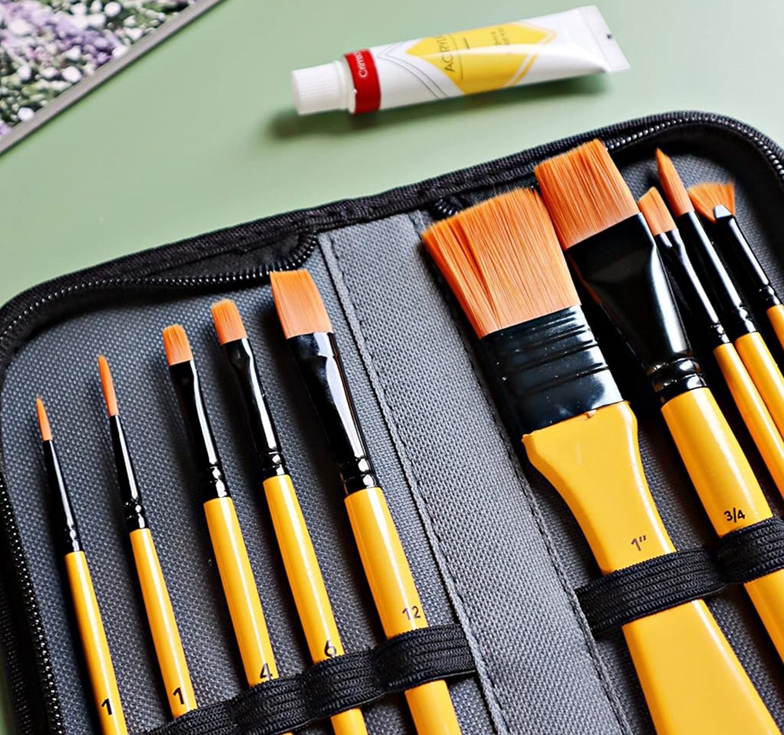 Set di 10 pennelli sintetici in una custodia protettiva da viaggio pieghevole.